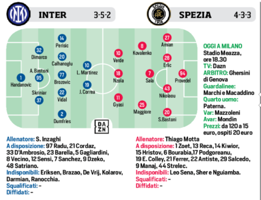 L'edizione odierna de "Il Corriere dello Sport" si sofferma sulla gara di oggi in serie A tra Inter e Spezia....