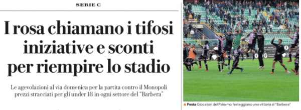 L'edizione odierna de "Il Giornale di Sicilia" si sofferma sulla gara di domenica contro il Monopoli. Gli scontri in alta...