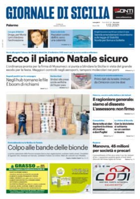 L'edizione odierna de "Il Giornale di Sicilia" si sofferma in prima pagina su vari temi. Ecco il piano Natale sicuro:...