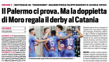 Corriere dello Sport: “Il Palermo ci prova. Ma la doppietta di Moro regala il derby al Catania”
