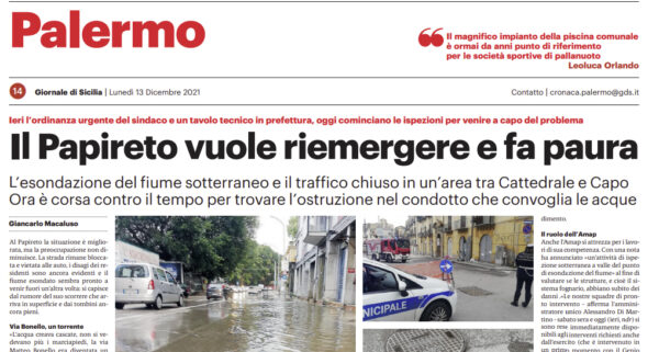 L'edizione odierna de "Il Giornale di Sicilia" si sofferma sull'esondazione del Papireto. Al Papireto la situazione è migliorata, ma la...