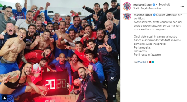 Mariano Izco attraverso il proprio profilo Instagram ha commentato la vittoria sul Palermo nel derby siciliano scrivendo: Questa vittoria è...