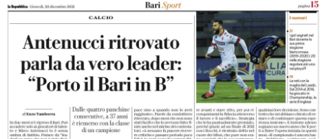 L'edizione odierna de "La Repubblica" si sofferma su Antenucci e sul Bari. In due mesi si è ripreso il Bari....