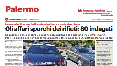 L'edizione odierna de "Il Giornale di Sicilia" si sofferma su dei loschi affari dei rifiuti a Palermo. Due aziende sequestrate...