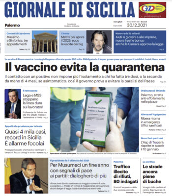 L'edizione odierna de "Il Giornale di Sicilia" si sofferma su vari temi in prima pagina. Il contatto con un positivo...