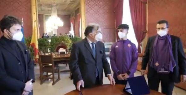 Il sindaco di Palermo Leoluca Orlando ha premiato il capitano della Nazionale Under 15 e calciatore della Fiorentina Piergiorgio Bonanno....