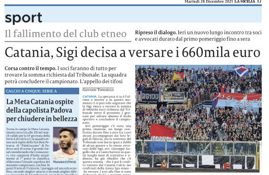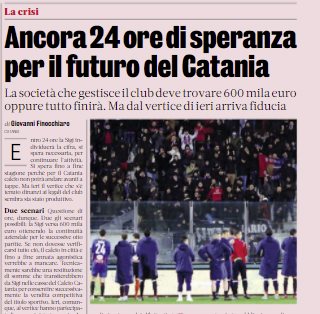 L'edizione odierna de "La Sicilia" si sofferma sul futuro del Catania con la Sigi pronta a versare la cifra necessaria...
