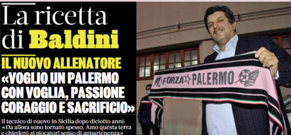 L'edizione odierna de "La Gazzetta dello Sport" si sofferma sull'arrivo di Silvio Baldini al Palermo. Palermo, Baldini, Zamparini. Storie che...