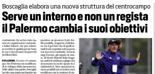 L'edizione odierna del "Giornale di Sicilia" parla del cambio tattico adottato dal tecnico del Palermo Roberto Boscaglia. I rosanero sono...