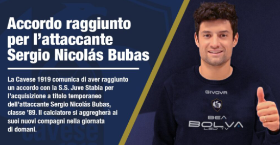 Attraverso una nota apparsa sul proprio sito ufficiale, la Cavese annuncia l'ingaggio si Sergio Nicolás Bubas dalla Juve Stabia. Ecco...