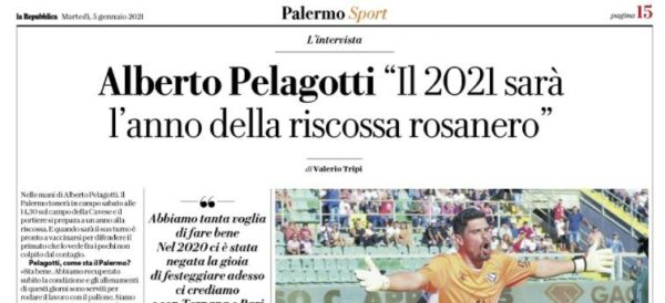 L'edizione odierna de "La Repubblica" riporta le dichiarazioni di Alberto Pelagotti, portiere del Palermo: «Come sta il Palermo? Sta bene....