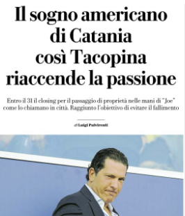 L'edizione odierna de "La Repubblica" si sofferma sul sogno americano del Catania. Il club etneo è pronto ad accogliere Joe...