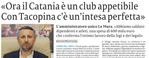 L'edizione odierna de "La Sicilia" riporta le dichiarazioni di Nico Le Mura, amministratore unico del Catania. «Abbiamo pagato, rispettando i...