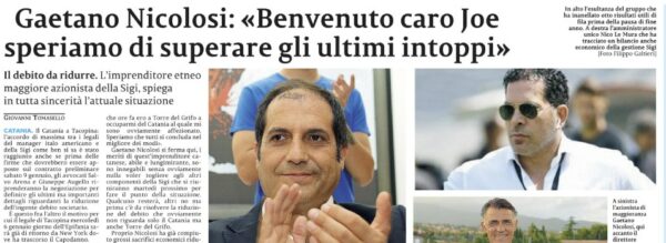 L'edizione odierna de "La Sicilia" riporta le dichiarazioni di Gaetano Nicolosi, presidente del Catania, in merito alla cessione del club...