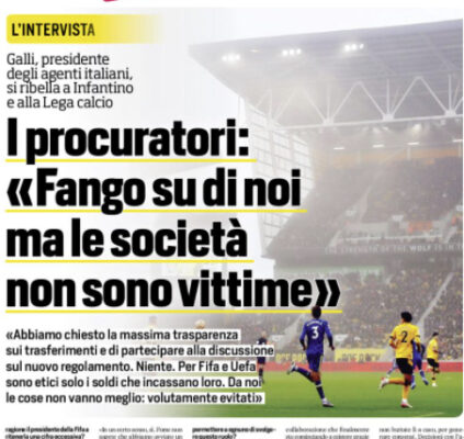 L'edizione odierna de "Il Corriere dello Sport" si sofferma sulla ribellione di Galli nei confronti della Fifa e della Lega....