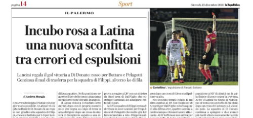 L'edizione odierna de "La Repubblica" si sofferma sulla gara persa ieri dal Palermo contro il Latina. Il Palermo festeggia il...