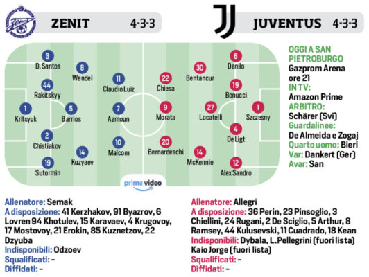 Corriere dello Sport: “Champions League, stasera Zenit-Juventus. Le probabili formazioni”