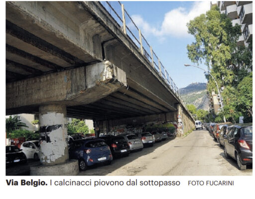 L'edizione odierna de "Il Giornale di Sicilia" si sofferma sul ponte di via Belgio in cui cadono calcinacci. Piovono calcinacci...