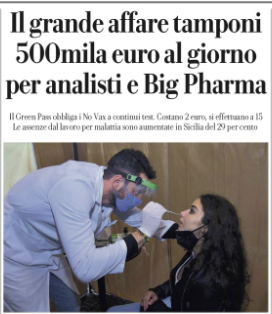 L'edizione odierna de "La Repubblica" si sofferma sull'affare tamponi in Italia a seguito dell'obbligo di green pass. Mezzo milione di...