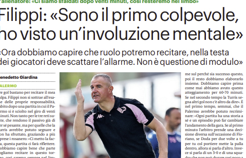 L'edizione odierna de "Il Giornale di Sicilia" si sofferma sulla posizione di Giacomo Filippi a seguito della brutta figura fatta...