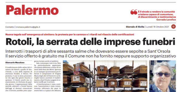 Gds: “Palermo: Rotoli, la serrata delle imprese funebri”