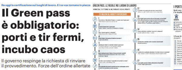 L'edizione odierna de "Il Giornale di Sicilia" si sofferma sull'obbligo green pass anche negli uffici della Regione. Anche un barista,...