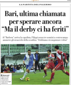 L'edizione odierna de "La Repubblica" si sofferma sulla gara di oggi tra Palermo e Bari e le parole di Filippi....
