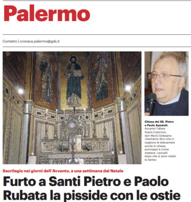L'edizione odierna de "Il Giornale di Sicilia" si sofferma su quanto accaduto alla chiesa "Santi Pietro e Paolo" a Palermo....