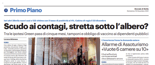 L'edizione odierna de "Il Giornale di Sicilia" si sofferma su una nuova stretta in arrivo in occasione delle festività. Una...