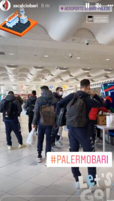 Attraverso le proprie storie Instagram il Bari ha pubblicato uno scatto della squadra all'Aeroporto mentre si reca verso l'imbarco che...