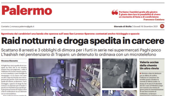 L'edizione odierna de "Il Giornale di Sicilia" si sofferma su un caso di raid notturni e droga. Al Paghi Poco...