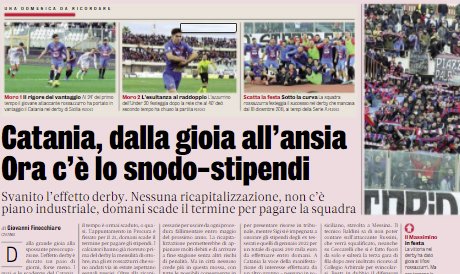 L'edizione odierna de "La Gazzetta dello Sport" si sofferma sul Catania e sul ritorno alla realtà dopo la gioia di...