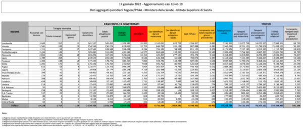 Le persone che hanno contratto il virus in Italia dall’inizio dell’epidemia sono 8.790.302. Di queste 141.391 sono morte, mentre 6.093.633 sono guarite o sono state dimesse....