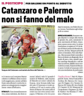 L'edizione odierna de "Il Corriere dello Sport" si sofferma sul pari tra Catanzaro e Palermo. Pari e patta. Al Catanzaro...