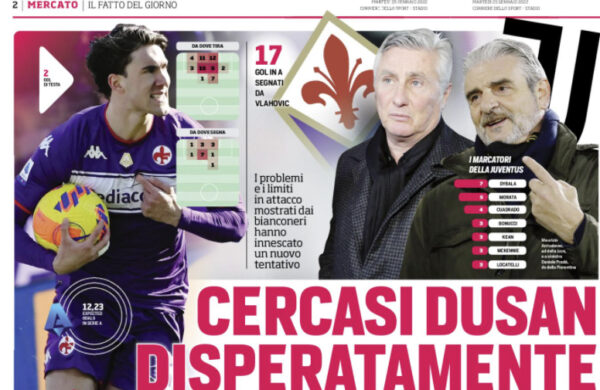L'edizione odierna de "Il Corriere dello Sport" si sofferma su Dusan Vlahovic e sul mercato. La “malinconoia” di Milan-Juve li...