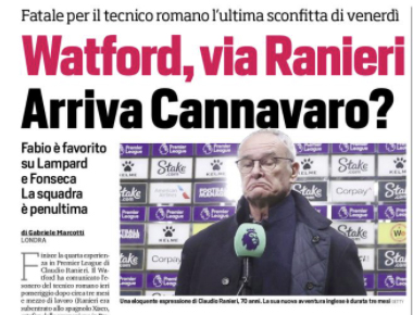 L'edizione odierna de "Il Corriere dello Sport" si sofferma sul Watford e l'esonero di Ranieri. Finisce la quarta esperienza in...