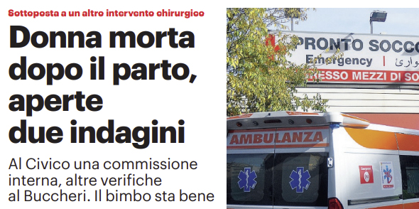 L'edizione odierna de "Il Giornale di Sicilia" si sofferma sulla tragedia che ha visto una donna morire dopo il parto...