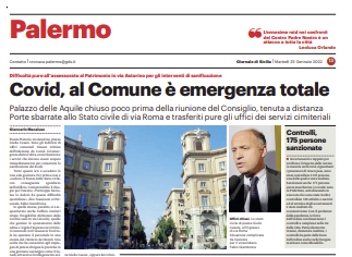 L'edizione odierna de "Il Giornale di Sicilia" si sofferma sull'emergenza covid nel comune di Palermo. Piazza Pretoria, via Astorino, piazza...