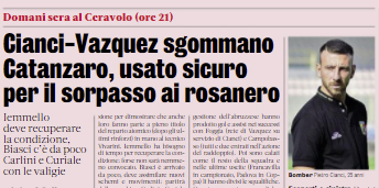 L'edizione odierna de "La Gazzetta dello Sport" si sofferma sulla sfida in programma domani tra Catanzaro e Palermo. Pietro Cianci...