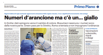 L'edizione odierna de "Il Giornale di Sicilia" si sofferma sul rischio zona arancione in Sicilia. I dati sono inequivocabili, e...
