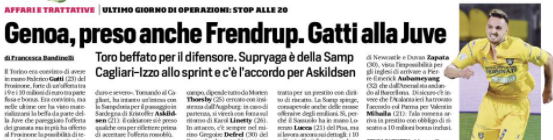 L'edizione odierna de "Il Corriere dello Sport" si sofferma sulle trattative del giorno in serie A. Il Torino era convinto...