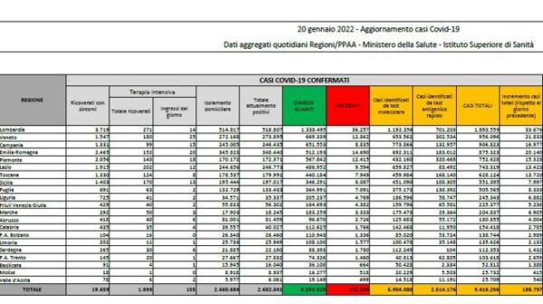 Sono 188.797 i nuovi casi di Covid in Italia (ieri sono stati 192.320). Sale così ad almeno 9.418.256 il numero...