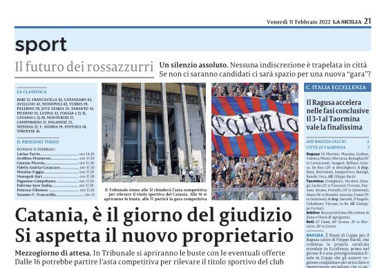 L'edizione odierna de "La Sicilia" si sofferma sul giorno del giudizio per il Catania, oggi infatti in tribunale si apriranno...