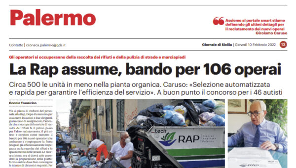 L'edizione odierna de "Il Giornale di Sicilia" si sofferma sulle assunzioni alla Rap. Via al piano di rinforzi del personale...