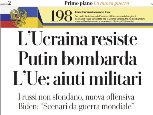 L'edizione odierna de "La Repubblica" si sofferma sulla guerra tra Russia e Ucraina. Al terzo giorno di guerra i russi...