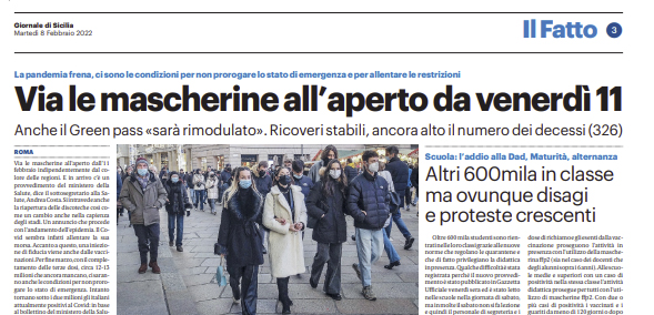 L'edizione odierna de "Il Giornale di Sicilia" si sofferma sulle nuove norme anti-covid in vigore da giorno 11 febbraio. Via...