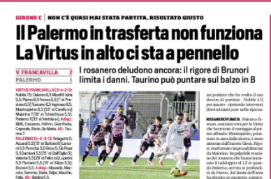 Corriere dello Sport: “Il Palermo in trasferta non funziona. La Virtus in alto ci sta a pennello”