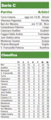 L'edizione odierna de "Il Giornale di Sicilia" ha stilato il programma di oggi in serie C e la classifica aggiornata.