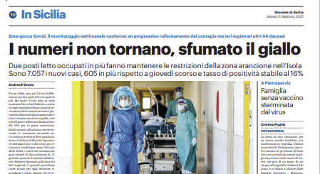 L'edizione odierna de "Il Giornale di Sicilia" si sofferma sui numeri della Pandemia in Sicilia che potrebbero far restare l'isola...