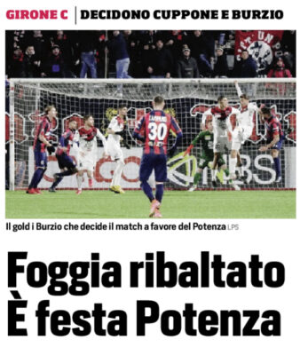 L'edizione odierna de "Il Corriere dello Sport" si sofferma sulla vittoria del Potenza sul Foggia. Il Potenza torna a gioire...